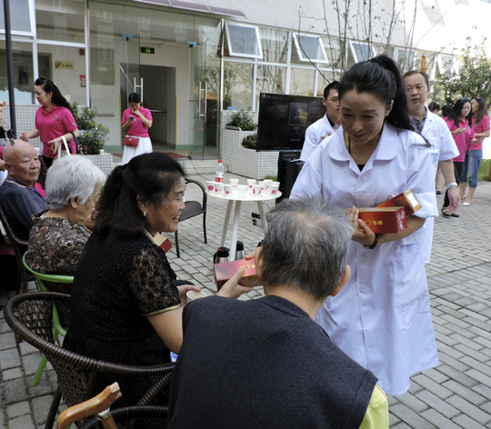 9月11日上午,庞医生亲率我院医护人员共10人,前往龙泉驿区侨颐园颐养居,举行“共度中秋.健康颐养”康复养生交流,与该园领导与环球夫人选手们共襄“中秋爱心活动”盛会。