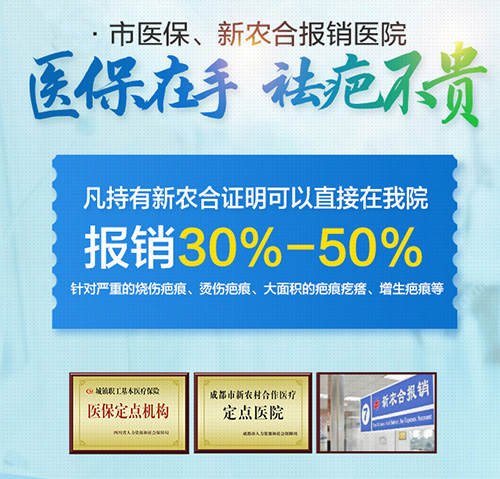 当前位置:首页>媒体报道核心导读:热烈祝贺我院成为新农合报销定点医院!经新农合医保对我院诊疗水平、医疗质量、收费标准等多方面综合评审后,正式批准成都军建医院为新农合定点医疗机构。即日起凡持有新农合证明的疤痕患者,在我院就诊可以直接报销啦!